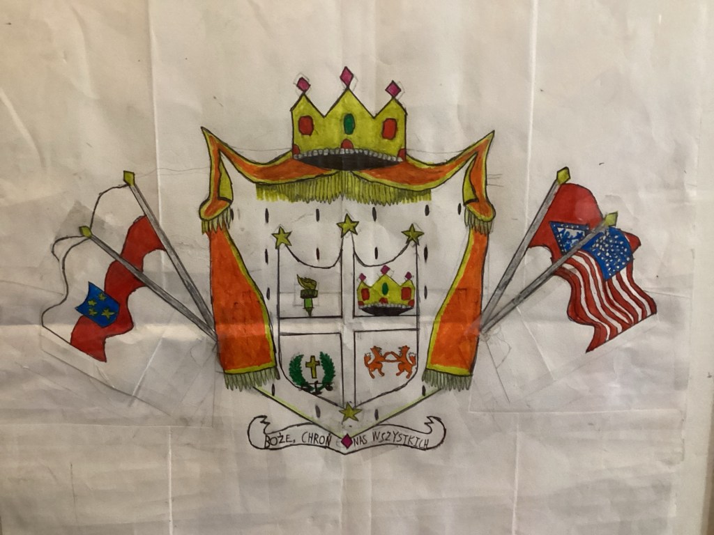 The Coat of Arms top crown represents the monarch, and the four flags are for Poland, America, Arkansas and the DPA. The orange in the National and Royal color. The motto, “Boze, Chron Nas Wszytkich”, is Polish for “God Save Us All”. The shields four symbols are for the four stars.